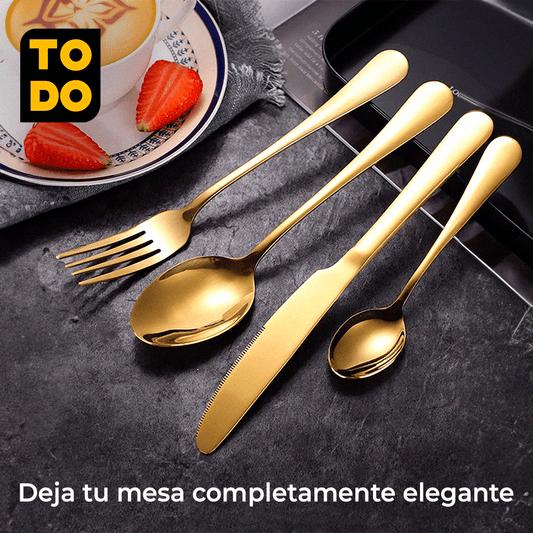 Cubiertos Dorados 6 puestos (GRATIS 1 EBOOK DE COCINA INTERNACIONAL + 1 CURSO DE COCINA EN VIDEO)