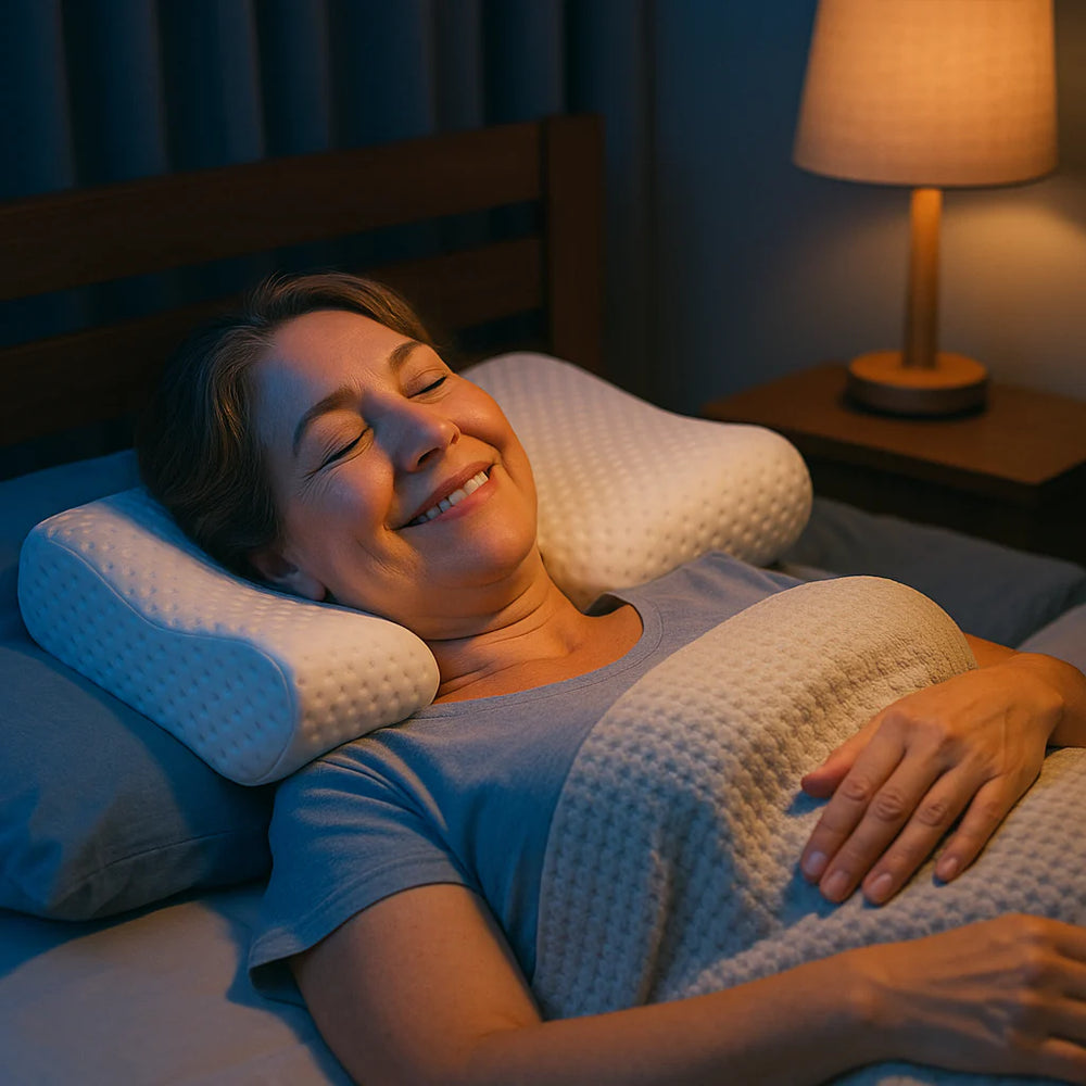 Soporte cervical real + frescura Aloe Vera. Duerme profundo y despierta renovado.