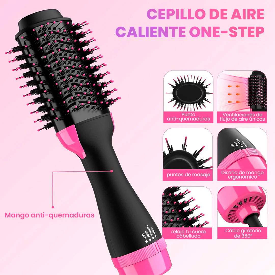 Con el Cepillo One Step Versión 2025, seca, alisa y da volumen en minutos, ahorrando tiempo y dejando tu cabello perfecto con una sola herramienta.