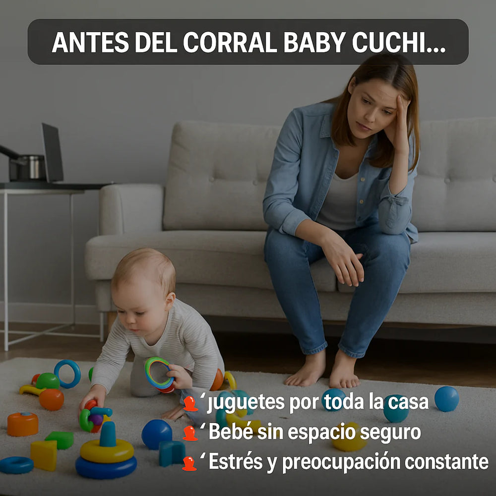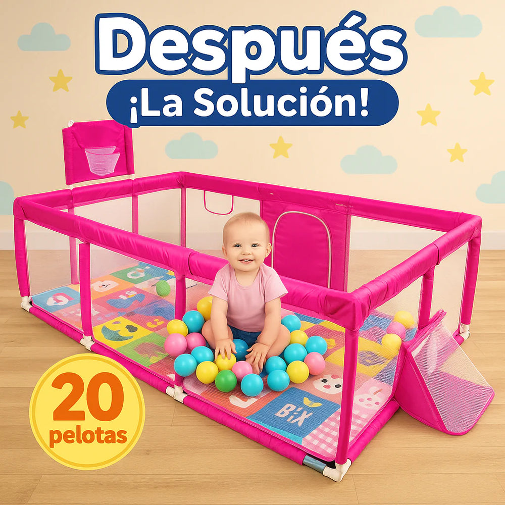 El Corral de Juegos con Tapete Baby Cuchi es mucho más que un corral, es la solución definitiva para padres que buscan seguridad, tranquilidad y desarrollo para sus hijos. Con su estructura reforzada y malla transpirable, tu bebé podrá jugar, gatear y explorar sin riesgos. El tapete acolchado no solo protege del piso frío, sino que además estimula su mente con colores, números y figuras educativas. Imagínate cocinar, trabajar o descansar mientras tu hijo disfruta feliz en su propio espacio. Sin juguetes regados por toda la casa, sin golpes ni accidentes, sin preocupaciones. Eso es lo que miles de papás y mamás ya están viviendo gracias a Baby Cuchi.