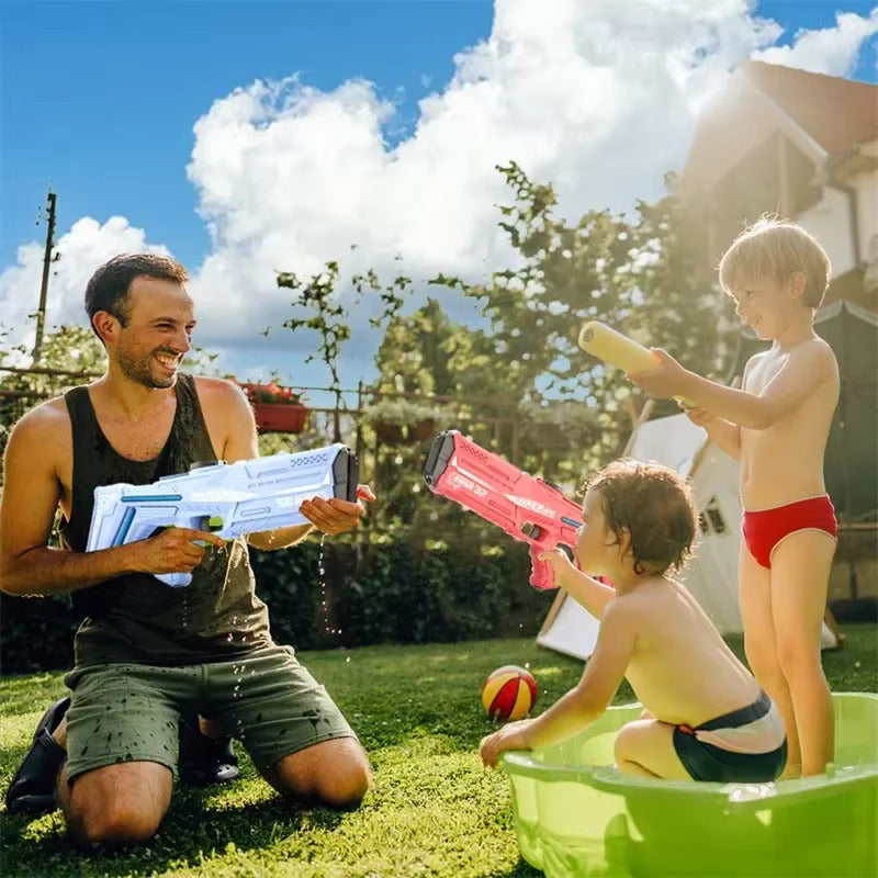 La pistola de agua eléctrica es la opción perfecta: fácil de usar y lista para brindar diversión sin complicaciones a toda la familia.