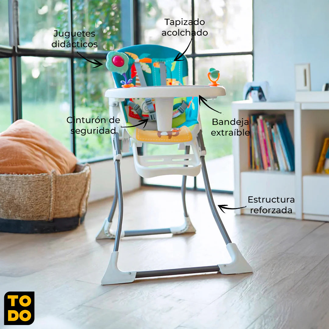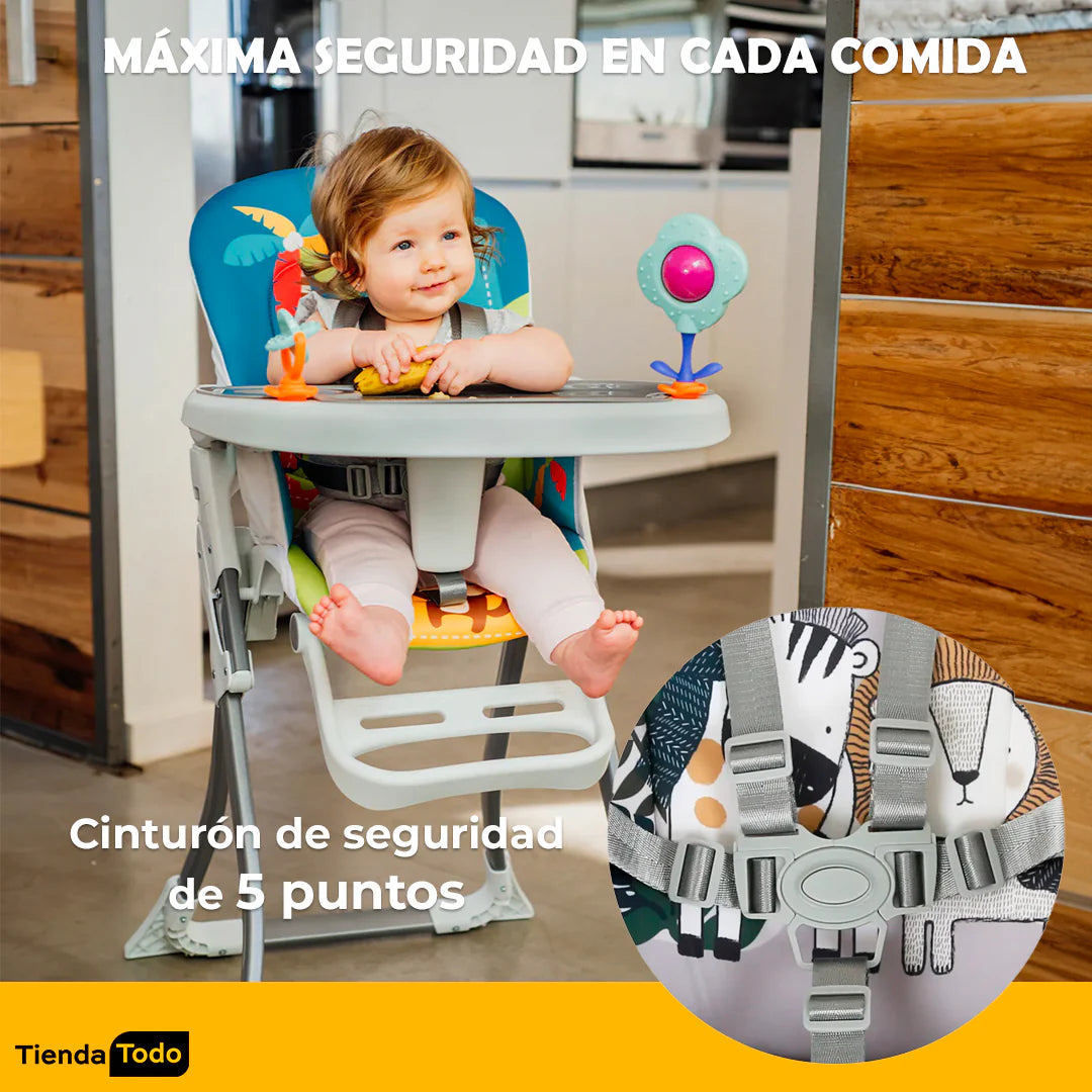 La Silla comedor incluye juguetes integrados que mantendrán a tu bebé entretenido mientras disfruta de sus comidas.